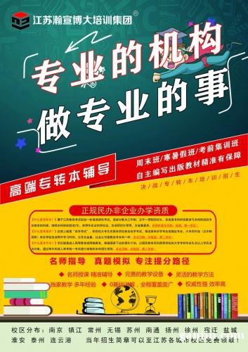 江苏五年制专转本培训辅导班就来瀚宣博大专转本培训学校!瀚宣博大专转本是江苏省唯1一家小班化、专业化、规模化、连锁办学的五年制专转本(五年一贯制专转本)培训辅导机构,通过率高达90%,全日制的上课模式,高考式的复习管理,拥有强大的师资阵容,精准的内部学习资料,提前获取主考院校专业课考纲,并由授课老师根据专业课考试的重难点进行针对性的辅导和查漏补缺,让学员复习更有针对性和目的性;英语的辅导更是从基础的音标开始教起,让学员能更好的根据发音高效记忆单词,积累词汇量,并通过瀚宣博大内部编著的英语试卷集、习题册,及时掌握每个学员的学习情况。根据学员的基础和成绩提供专业咨询、院校介绍、英语辅导、考纲提供、专业课教学、统一报名、集体送考等一系列流程化服务,让考生对五年制专转本的了解更加深入,更加有方向性和针对性。更多五年制专转本可联系瀚宣博大专转本王老师158(微)5279(同)6355或可拨打上海中公瀚宣博大培训集团全国免费热线: 4006565430(上午9:00-下午17:30)了解详情并预约免费试听课。